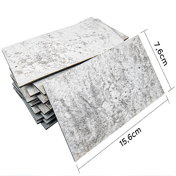 Ristkülikukujuline kuju (15,6 x 7,6 cm) võimaldab erinevaid atraktiivseid mustreid. Iga 10 plaati sisaldav pakend katab umbes 0,12 ruutmeetrit, mis sobib ideaalselt loominguliste kujunduste jaoks.