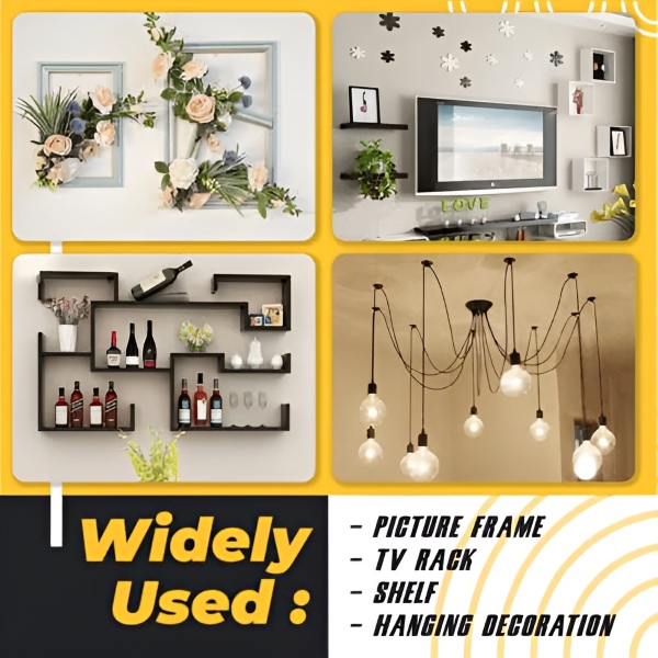 Ideaalne erinevate kodukaunistuse vajaduste jaoks, sealhulgas pildiraamide, lampide, kardinate, kellade, taimede ja muu riputamiseks kipsplaadile või kipsplaattahvlitele.
