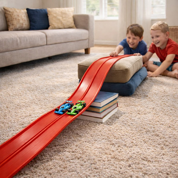 Lapsed saavad rada kujundada igapäevaste esemete abil, luues hüppeid, tunneleid ja silmuseid, mis soodustab kujutlusvõimet ja probleemide lahendamist korduva mängu asemel. See hoiab lapsed tundideks keskendununa ilma ekraanideta.