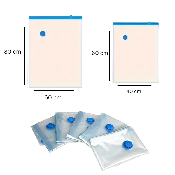Kapiruumi napib? Raske kõike kohvrisse mahutada? VACKBAGS vaakumkotid suruvad kokku suured esemed kuni 80%, andes sulle koheselt ruumi olulise jaoks. Lihtsalt paki riided või voodipesu, sulge kott ja kasuta õhu eemaldamiseks mis tahes kodust tolmuimejat – see võtab vähem kui 60 sekundit. Rohkem ruumi, vähem segadust, null muret.